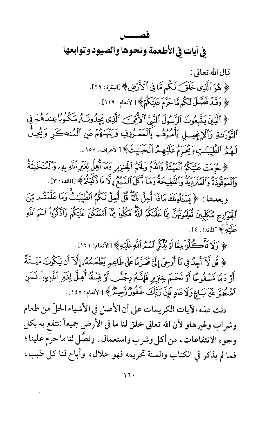 فصل في آيات في الأطعمة ونحوها والصيود وتوابعها قال الله تعالى: