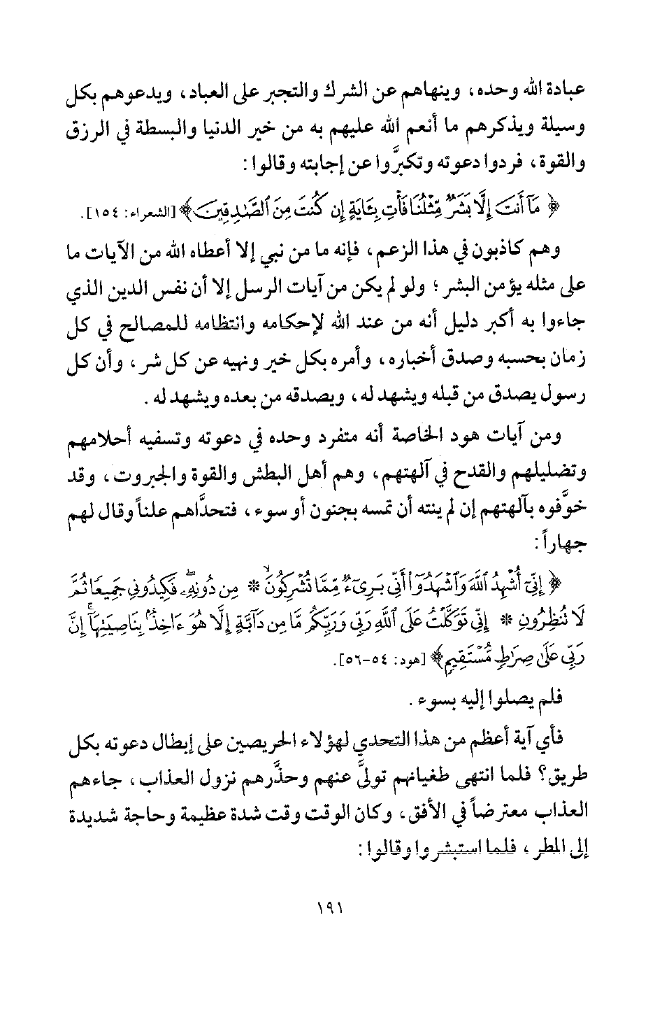 عبادة الله وحده، وينهاهم عن الشرك والتجبر على العباد، ويدعوهم بكل وسيلة، ويذكرهم ما أنعم الله عليهم به من خير الدنيا والبسطة في الرزق والقوة، فردوا دعوته وتكبروا عن إجابته وقالوا: