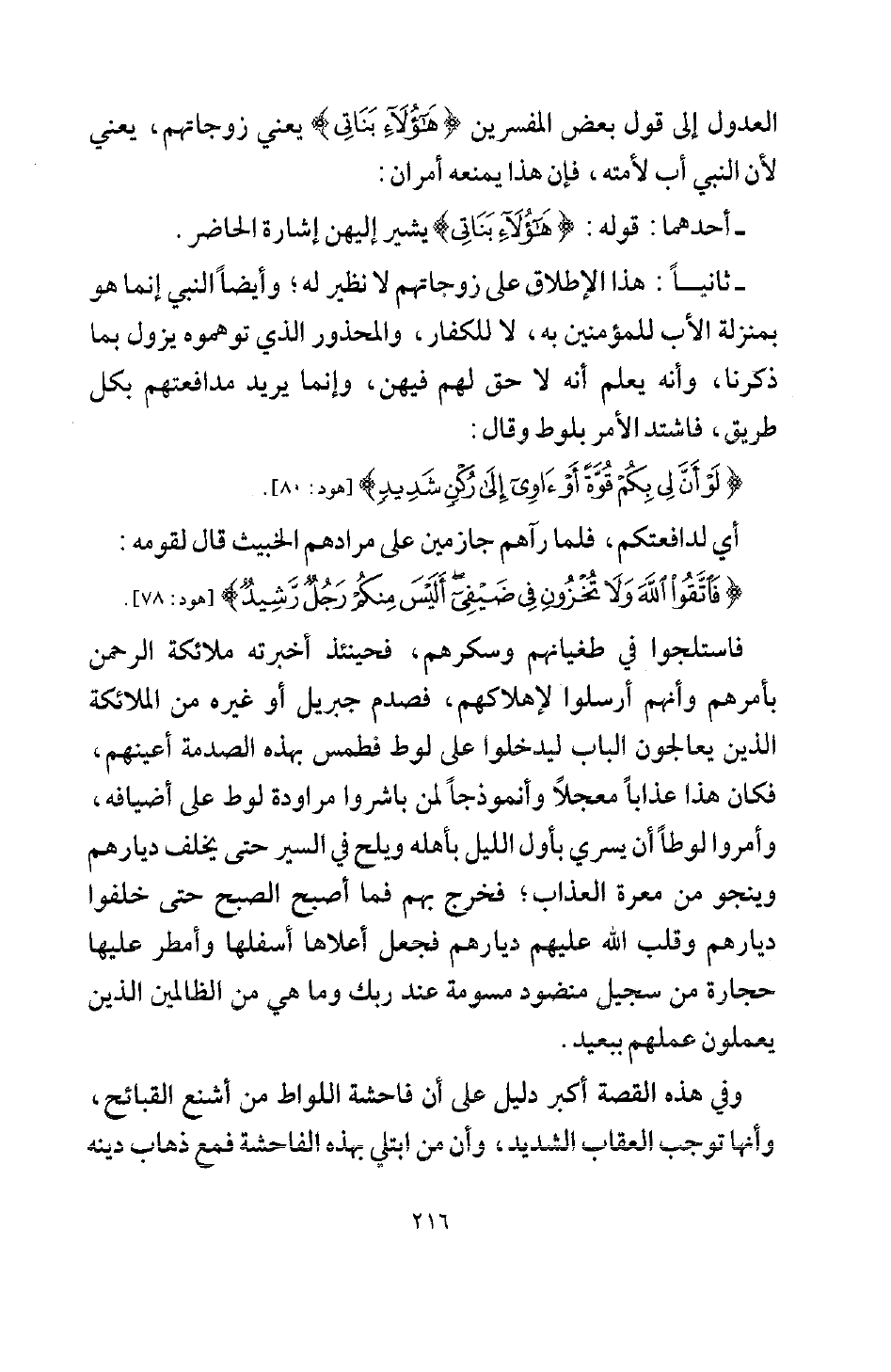 العدول إلى قول بعض المفسرين {هَؤُلَاءِ بَنَاتِي} [هود: 78] يعني: زوجاتهم، يعني: لأن النبي أب لأمته، فإن هذا يمنعه أمران: