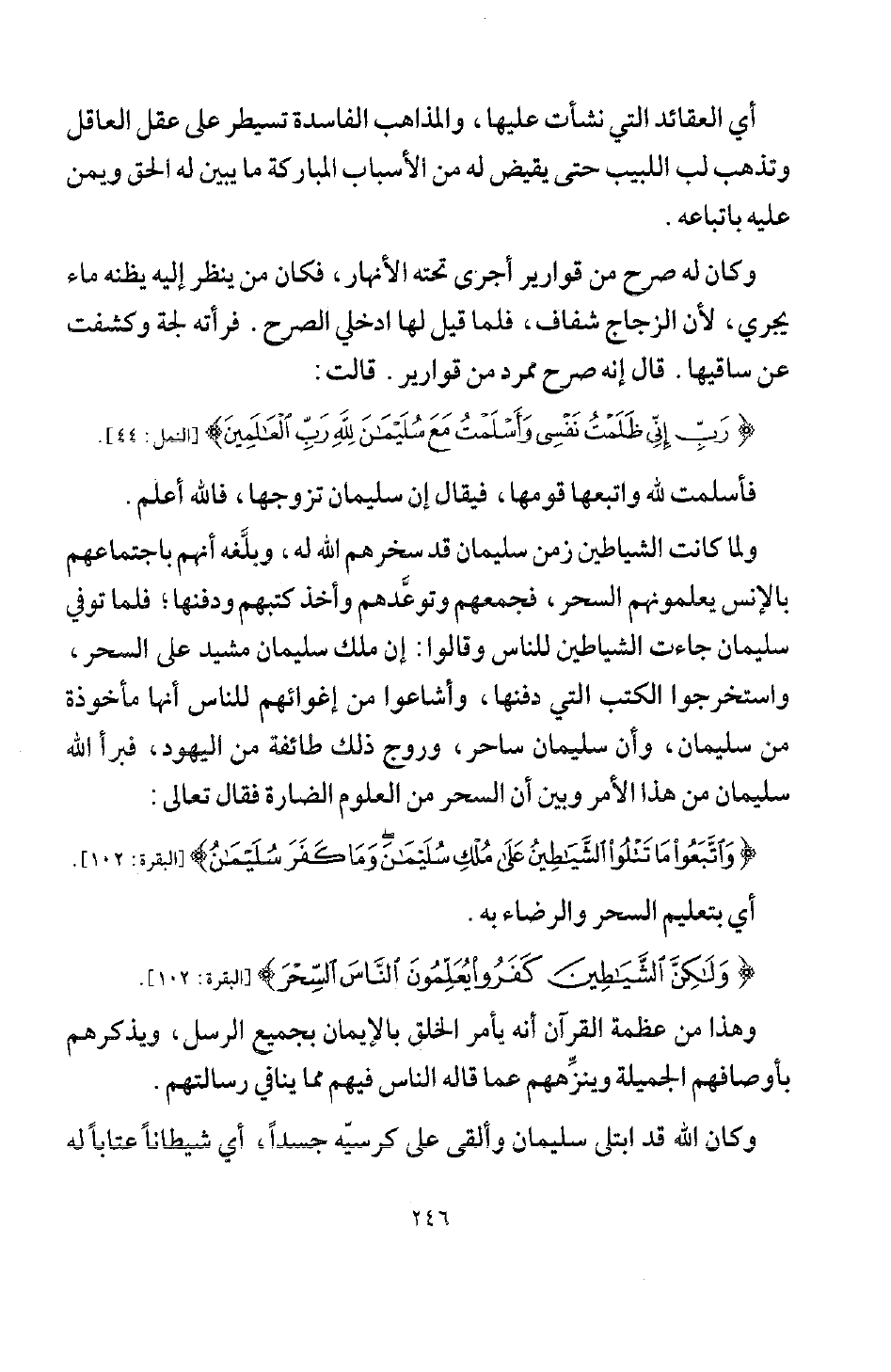 {وَاتَّبَعُوا مَا تَتْلُو الشَّيَاطِينُ عَلَى مُلْكِ سُلَيْمَانَ وَمَا كَفَرَ سُلَيْمَانُ} [البقرة: 102]
