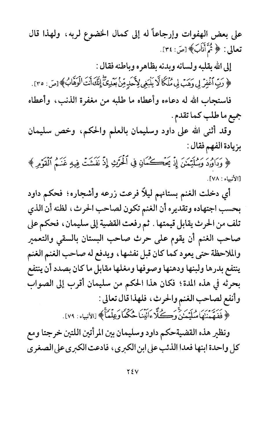 {وَدَاوُدَ وَسُلَيْمَانَ إِذْ يَحْكُمَانِ فِي الْحَرْثِ إِذْ نَفَشَتْ فِيهِ غَنَمُ الْقَوْمِ} [الأنبياء: 78]