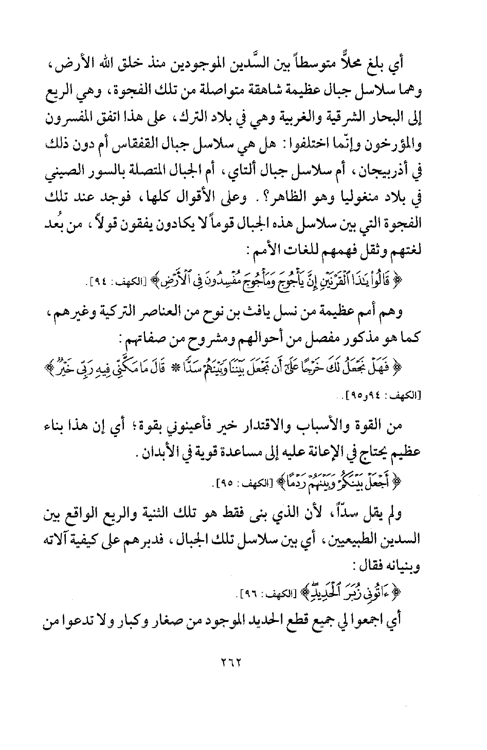 أي: بلغ محلا متوسطا بين السَّدين الموجودين منذ خلق الله الأرض، وهما سلاسل جبال عظيمة شاهقة متواصلة من تلك الفجوة، وهي الريع إلى البحار الشرقية والغربية وهي في بلاد الترك، على هذا اتفق المفسرون والمؤرخون، وإنما اختلفوا: هل هي سلاسل جبال القفقاس أم دون ذلك في أذربيجان، أم سلاسل جبال ألتاي، أم الجبال المتصلة بالسور الصيني في بلاد منغوليا؟ وهو الظاهر، وعلى الأقوال كلها فوجد عند تلك الفجوة التي بين سلاسل هذه الجبال قوما لا يكادون يفقهون قولا؛ من بُعد لغتهم، وثقل فهمهم للغات الأمم: