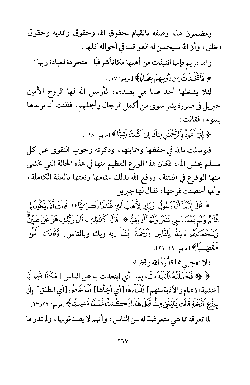 فتوسلت بالله في حفظها وحمايتها، وذكرته وجوب التقوى على كل مسلم يخشى الله، فكان هذا الورع العظيم منها في هذه الحالة التي يخشى منها الوقوع في الفتنة، ورفع الله بذلك مقامها، ونعتها بالعفة الكاملة، وأنها أحصنت فرجها، فقال لها جبريل:
