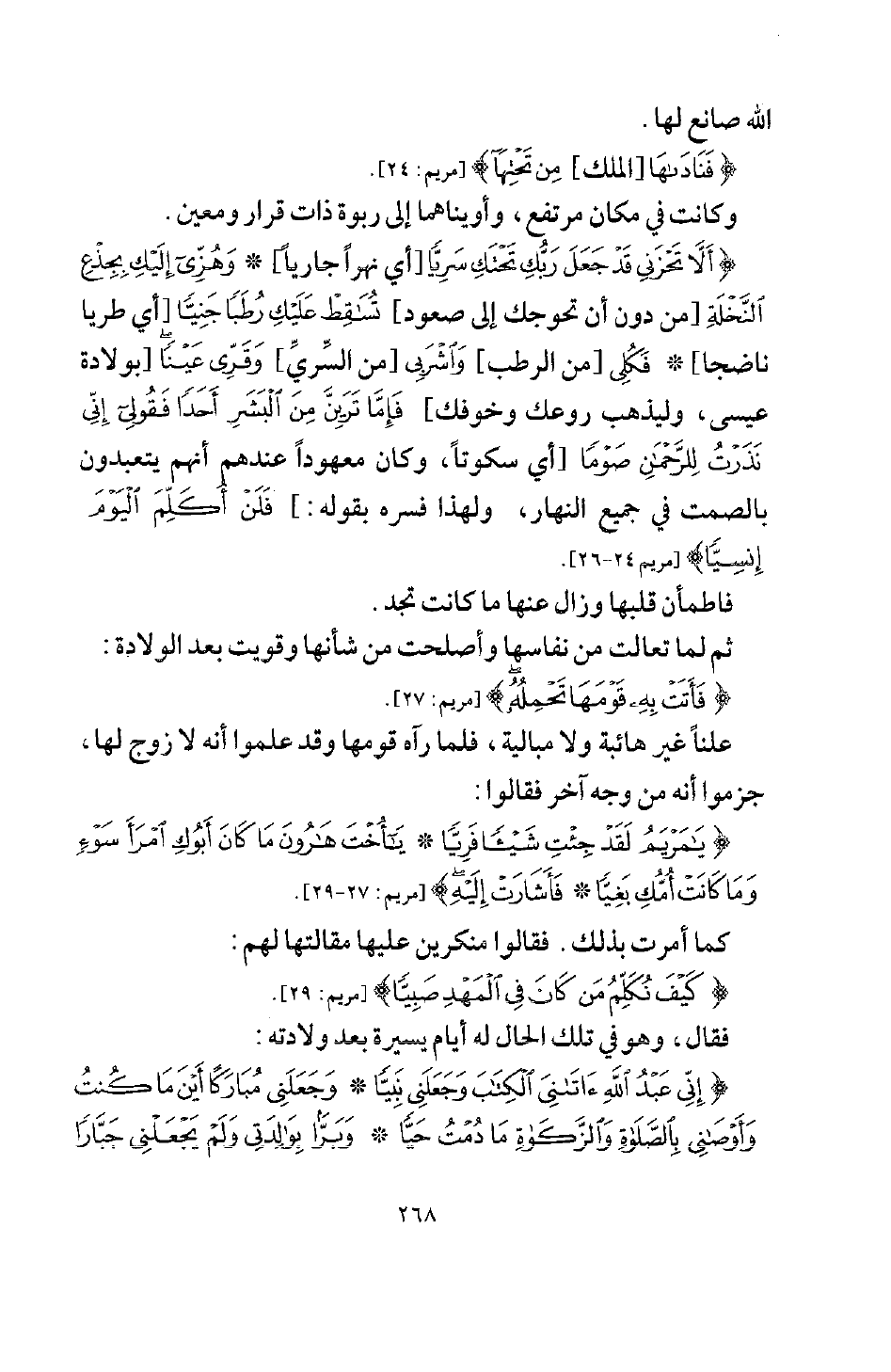 {إِنِّي عَبْدُ اللَّهِ آتَانِيَ الْكِتَابَ وَجَعَلَنِي نَبِيًّا - وَجَعَلَنِي مُبَارَكًا أَيْنَ مَا كُنْتُ وَأَوْصَانِي بِالصَّلَاةِ وَالزَّكَاةِ مَا دُمْتُ حَيًّا - وَبَرًّا بِوَالِدَتِي وَلَمْ يَجْعَلْنِي جَبَّارًا شَقِيًّا - وَالسَّلَامُ عَلَيَّ يَوْمَ وُلِدْتُ وَيَوْمَ أَمُوتُ وَيَوْمَ أُبْعَثُ حَيًّا} [مريم: 30 - 33]