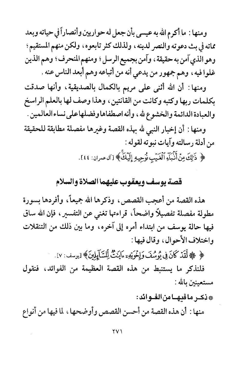 قصة يوسف ويعقوب عليهما الصلاة والسلام هذه القصة من أعجب القصص، وذكرها الله جميعا، وأفردها بسورة مطولة مفصلة تفصيلا واضحا، قراءتها تغني عن التفسير، فإن الله ساق فيها حالة يوسف من ابتداء أمره إلى آخره، وما بين ذلك من التنقلات واختلاف الأحوال، وقال فيها: