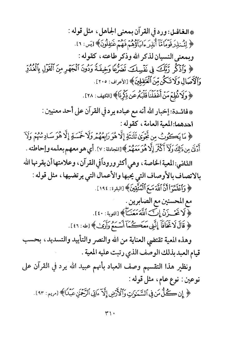 ونظير هذا التقسيم وصف العباد بأنهم عبيد لله يرد في القرآن على نوعين: نوع عام مثل قوله: