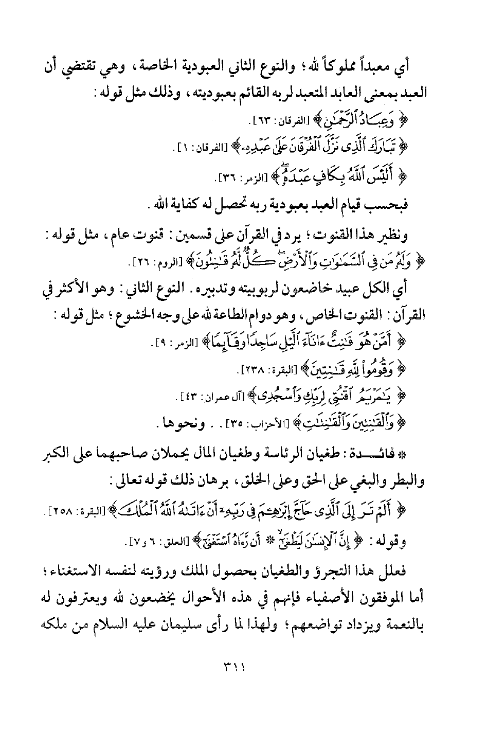 أي: معبدا مملوكا لله، والنوع الثاني العبودية الخاصة، وهي تقتضي أن العبد بمعنى العابد المتعبد لربه القائم بعبوديته، وذلك مثل قوله: