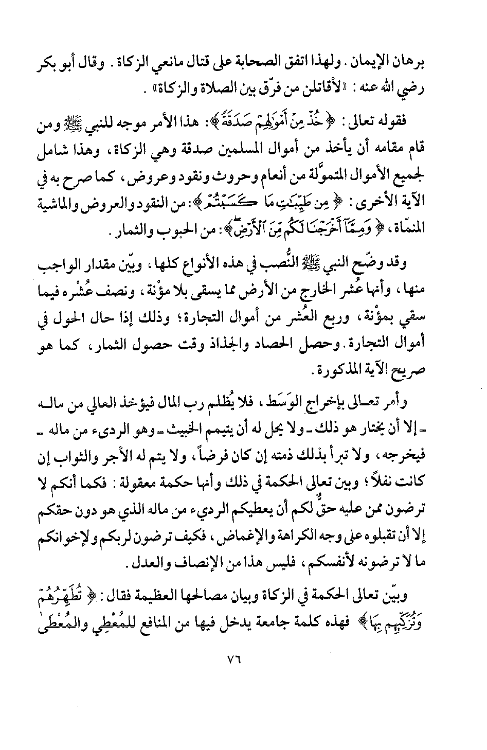 برهان الإيمان، ولهذا اتفق الصحابة على قتال مانعي الزكاة، وقال أبو بكر رضي الله عنه: " لأقاتلن من فرق بين الصلاة والزكاة ".