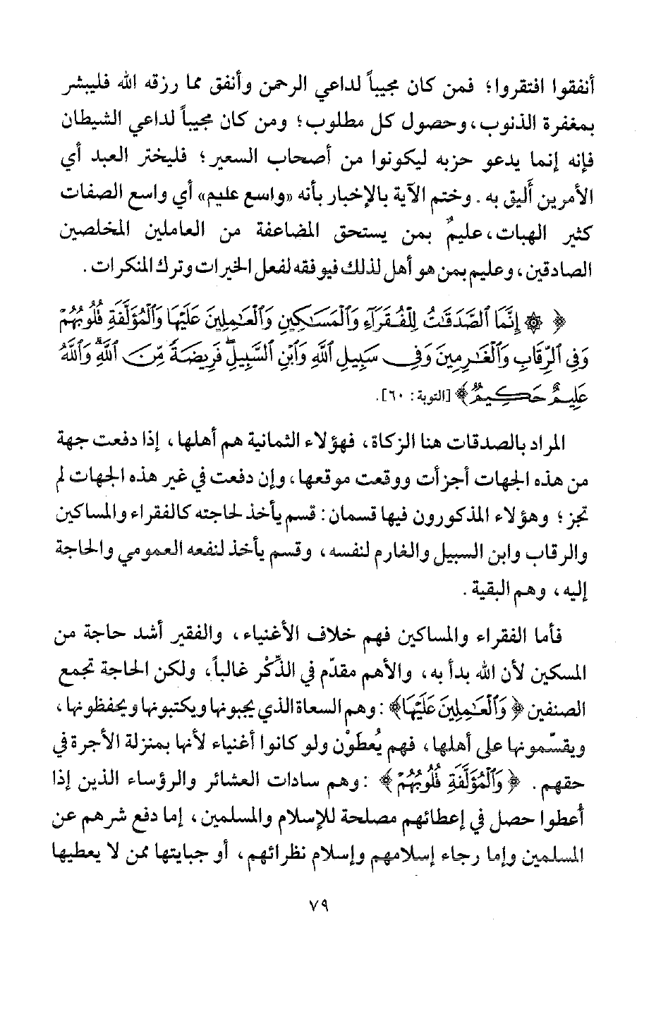 {إِنَّمَا الصَّدَقَاتُ لِلْفُقَرَاءِ وَالْمَسَاكِينِ وَالْعَامِلِينَ عَلَيْهَا وَالْمُؤَلَّفَةِ قُلُوبُهُمْ وَفِي الرِّقَابِ وَالْغَارِمِينَ وَفِي سَبِيلِ اللَّهِ وَاِبْنِ السَّبِيلِ فَرِيضَةً مِنَ اللَّهِ وَاللَّهُ عَلِيمٌ حَكِيمٌ} [التوبة: 60]