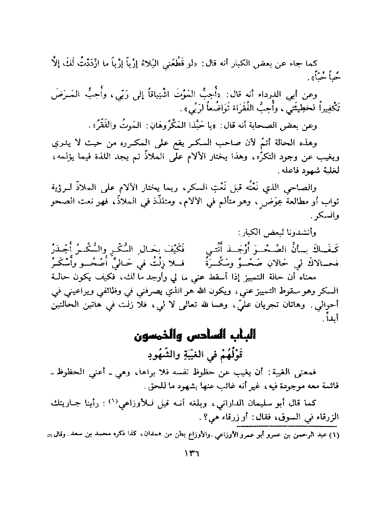 فالشواهد عَن سره مصروفة والاعواض عَن قلبه مطرودة فَلَا شَاهد يشهده وَلَا عوض يعبده وَلَا سر يطالعه وَلَا بر يلاحظه هُوَ فِي حَقه عَن حَقه مَحْجُوب وَفِي حَظه عَن حَظه مسلوب فَلَا نصيب لَهُ فِي نصيب وَهُوَ مأسور فِي أوفر النَّصِيب وَالْحق أوفر نصيب من فَاتَهُ الْحق فَلَيْسَ لَهُ شَيْء وَإِن ملك الْكَوْن وَمن وجد الْحق فَلهُ كل شَيْء وَإِن لم يملك ذرة