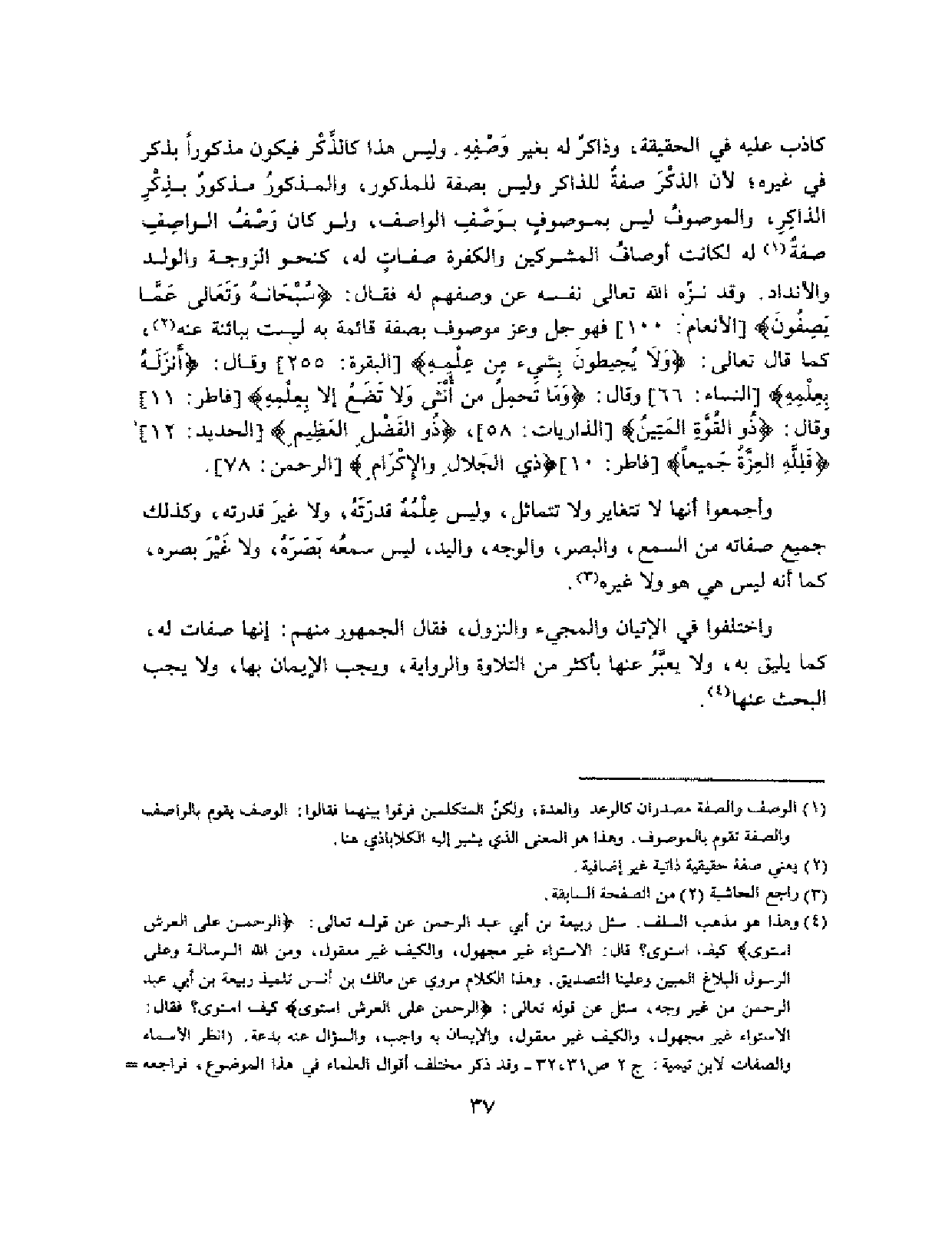 وَاخْتلفُوا فِي الْإِتْيَان والمجئ وَالنُّزُول فَقَالَ الْجُمْهُور مِنْهُم إِنَّهَا صِفَات لَهُ كَمَا يَلِيق بِهِ وَلَا يعبر عَنْهَا بِأَكْثَرَ من التِّلَاوَة وَالرِّوَايَة وَيجب الْإِيمَان بهَا وَلَا يجب الْبَحْث عَنْهَا