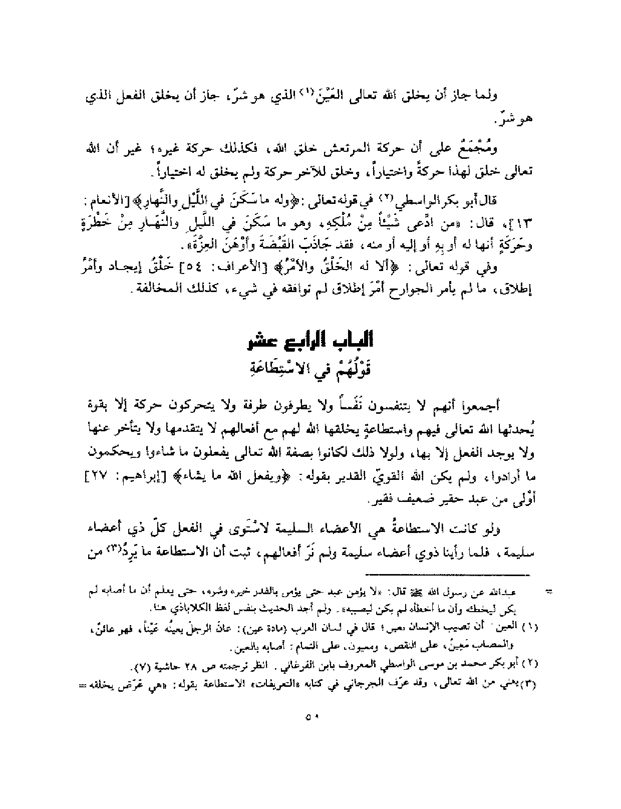 وَلَوْلَا ذَلِك لم يكن بَين العَبْد والرب فرق وَقَالَ الله تَعَالَى {وَلَا يَحسبن الَّذين كفرُوا أَنما نملي لَهُم خير لأَنْفُسِهِمْ إِنَّمَا نملي لَهُم ليزدادوا إِثْمًا} وَقَالَ {إِنَّمَا يُرِيد الله ليعذبهم بهَا فِي الْحَيَاة الدُّنْيَا وتزهق أنفسهم وهم كافرون} وَقَالَ {أُولَئِكَ الَّذين لم يرد الله أَن يطهر قُلُوبهم}