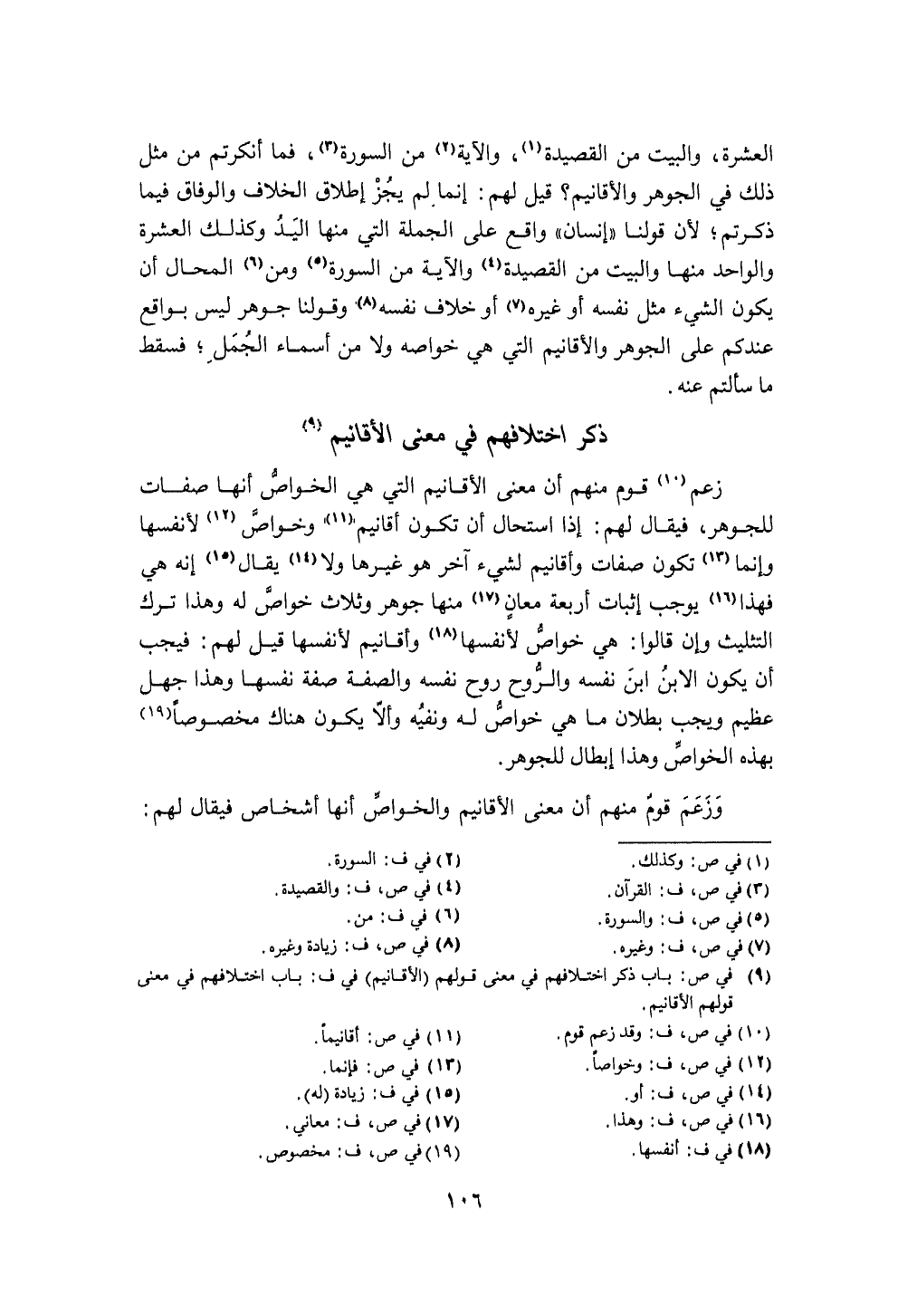 وَزعم قوم مِنْهُم أَن معنى الأقانيم والخواص أَنَّهَا أشخاص فَيُقَال لَهُم