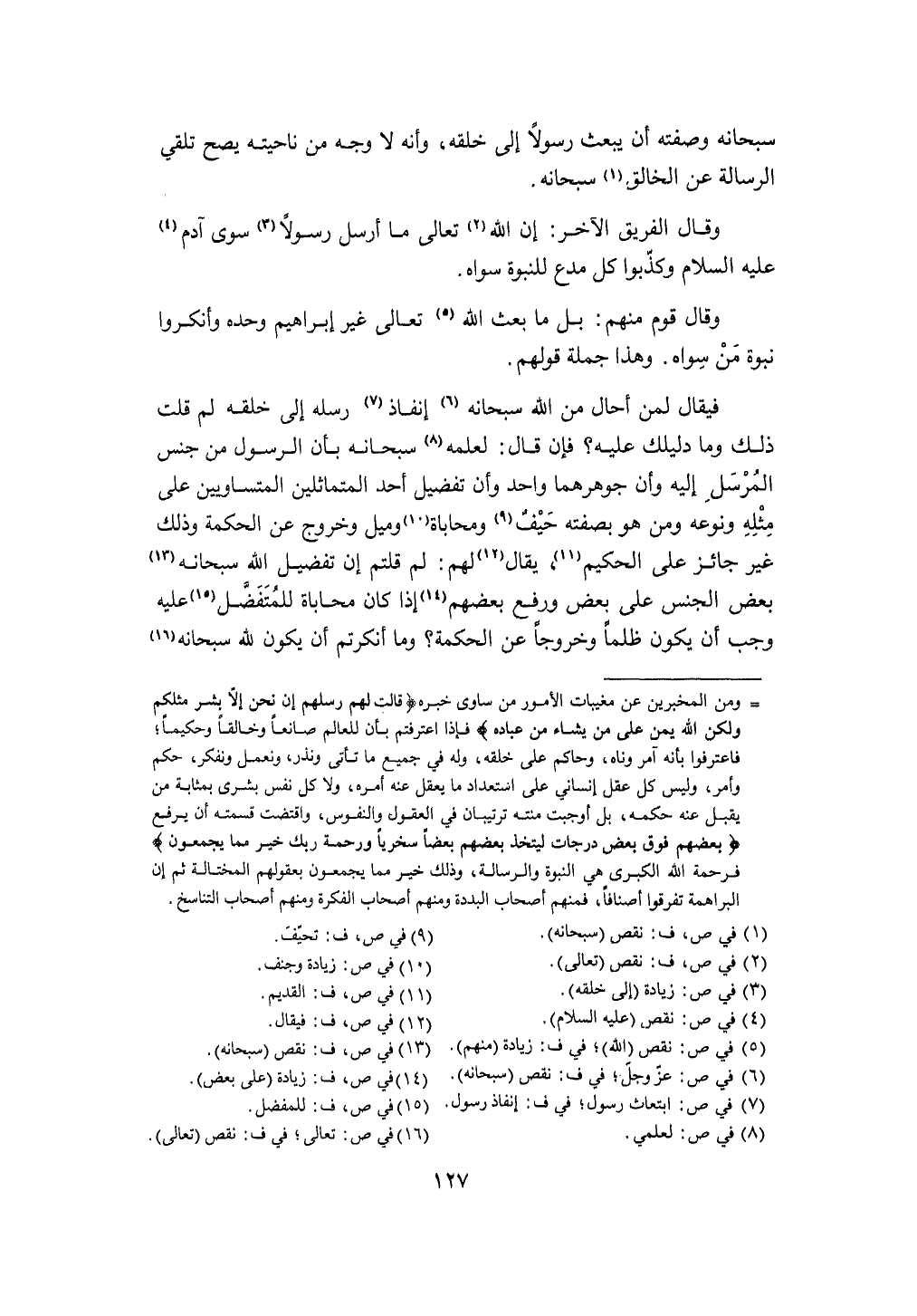 سُبْحَانَهُ وَصفته أَن يبْعَث رَسُولا إِلَى خلقه وَأَنه لَا وَجه من ناحيته يَصح تلقي الرسَالَة عَن الْخَالِق سُبْحَانَهُ