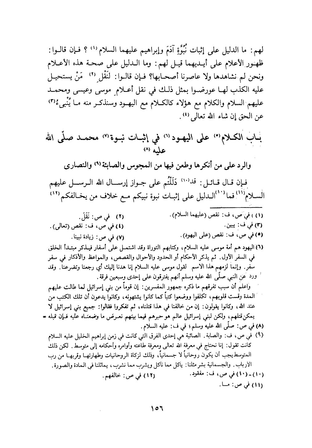 بَاب الْكَلَام على الْيَهُود فِي إِثْبَات نبوة مُحَمَّد صلى الله عَلَيْهِ وَسلم وَالرَّدّ على من أنكرها وَطعن فِيهَا من الْمَجُوس والصابئة وَالنَّصَارَى