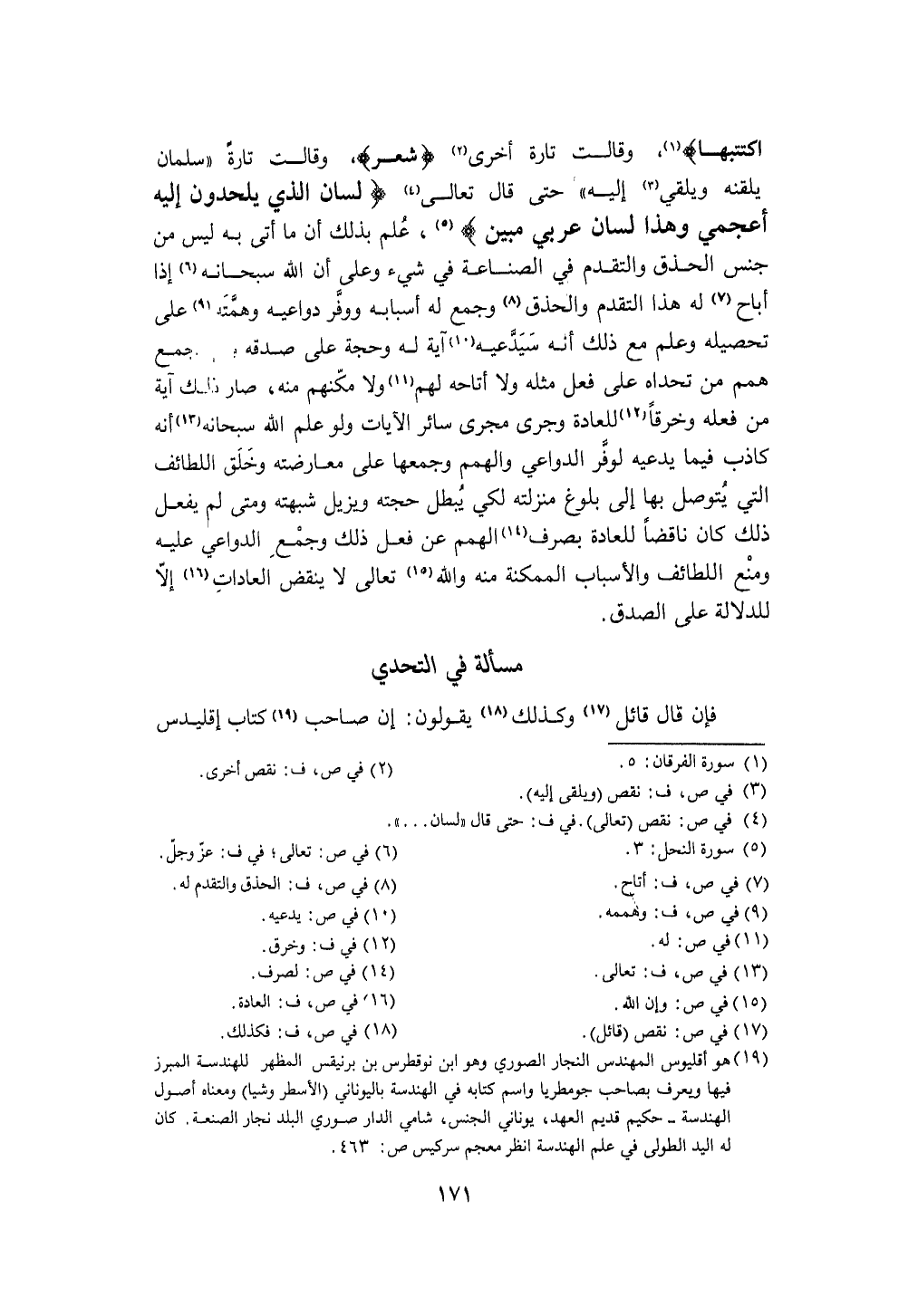 فَإِن قَالَ قَائِل وَكَذَلِكَ يَقُولُونَ إِن صَاحب كتاب إقليدس