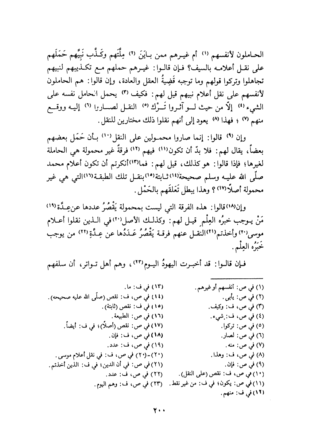 وَإِن قَالُوا إِنَّمَا صَارُوا محمولين على النَّقْل بِأَن حمل بَعضهم بَعْضًا يُقَال لَهُم فَلَا بُد أَن تكون فيهم فرقة غير مَحْمُولَة هِيَ الحاملة لغَيْرهَا فَإِذا قَالُوا هُوَ كَذَلِك قيل لَهُم فَمَا أنكرتم أَن تكون أَعْلَام مُحَمَّد صلى الله عَلَيْهِ وَسلم صَحِيحَة ثَابِتَة بِنَقْل تِلْكَ الطَّبَقَة الَّتِي هِيَ غير مَحْمُولَة أصلا وَهَذَا يبطل تعلقهم بِالْحملِ
