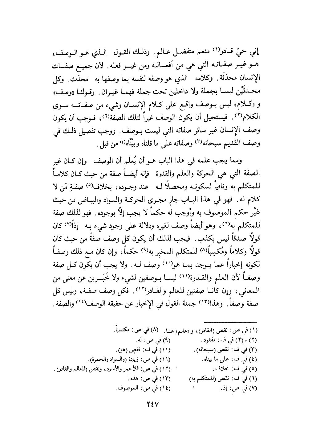 وَذَلِكَ القَوْل الَّذِي هُوَ الْوَصْف هُوَ غير صِفَاته الَّتِي هِيَ من أَفعاله وَمن غير فعله