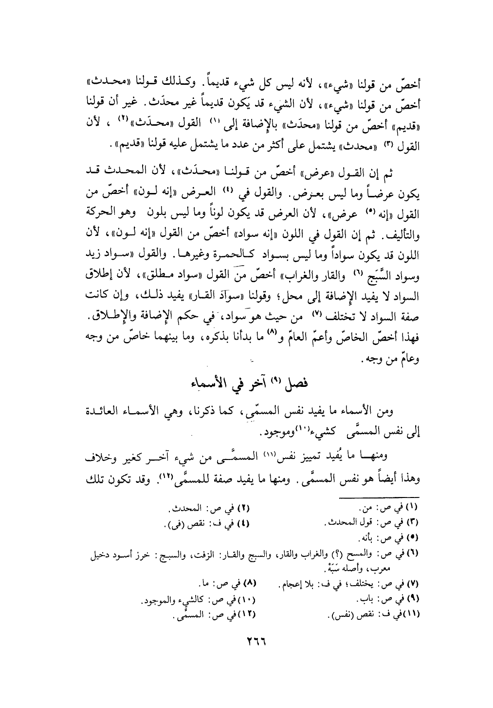 ثمَّ إِن القَوْل عرض أخص من قَوْلنَا مُحدث لِأَن الْمُحدث قد يكون عرضا وَمَا لَيْسَ بِعرْض