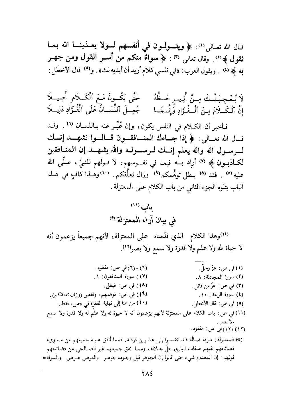 بَاب فِي بَيَان آراء الْمُعْتَزلَة