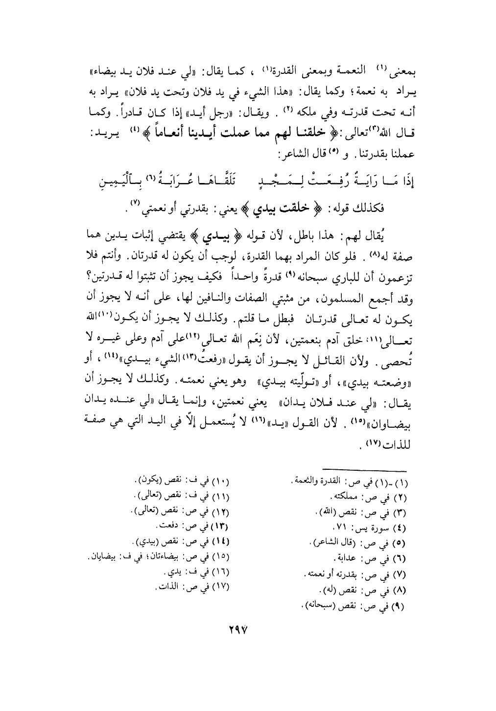 وَلِأَن الْقَائِل لَا يجوز أَن يَقُول رفعت الشَّيْء بيَدي أَو وَضعته بيَدي أَو تَوليته بيَدي وَهُوَ يَعْنِي نعْمَته