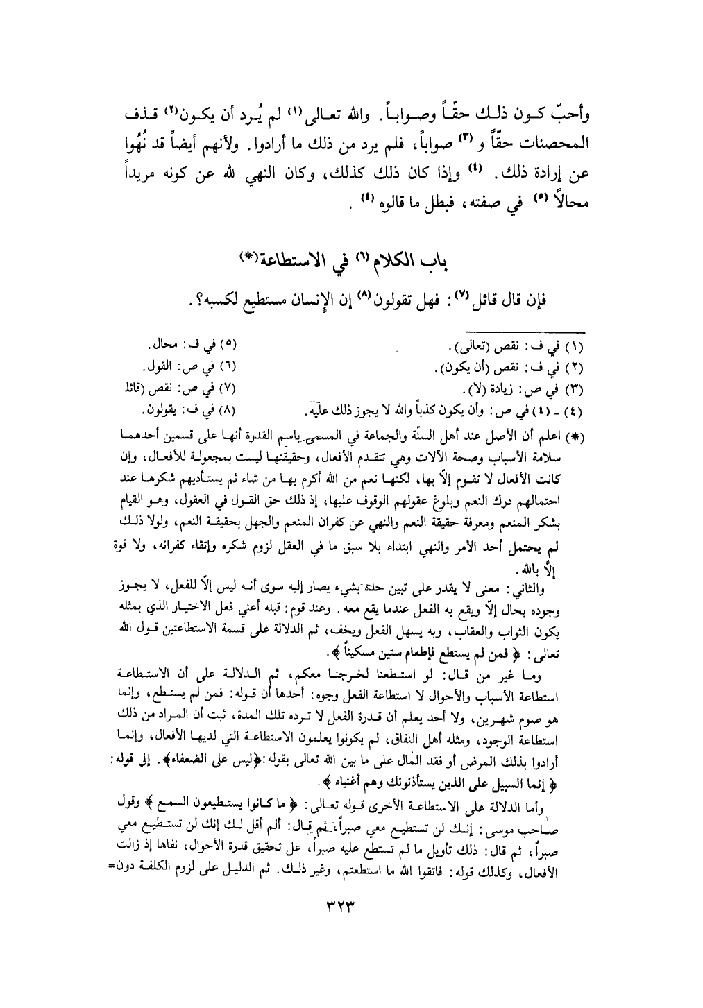 بَاب الْكَلَام فِي الِاسْتِطَاعَة