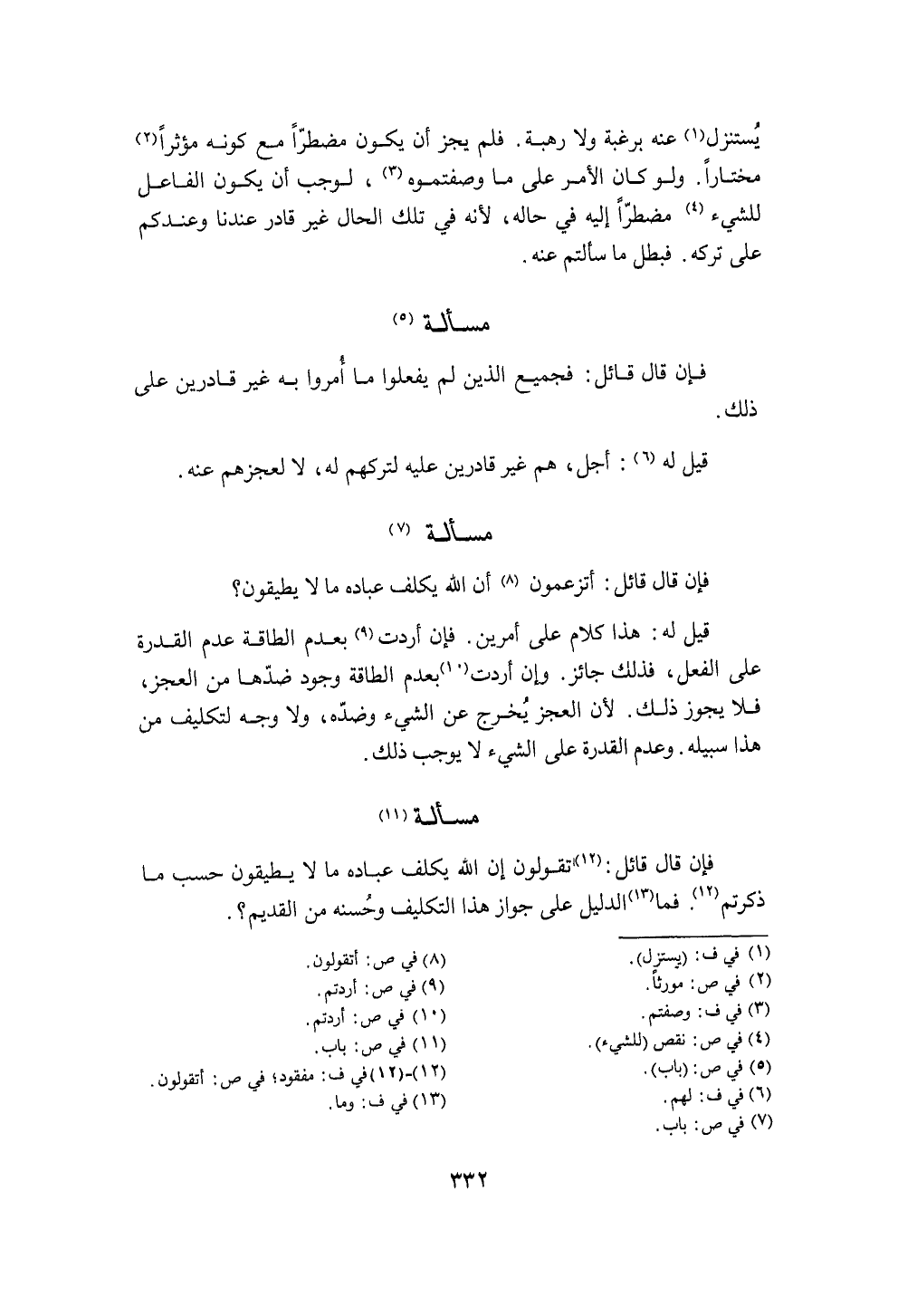 فَإِن قَالَ قَائِل تَقولُونَ إِن الله يُكَلف عباده مَا لَا يُطِيقُونَ حسب مَا ذكرْتُمْ