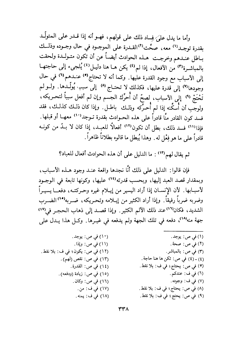 ثمَّ يُقَال لَهُم مَا الدَّلِيل على أَن هَذِه الْحَوَادِث أَفعَال للعباد