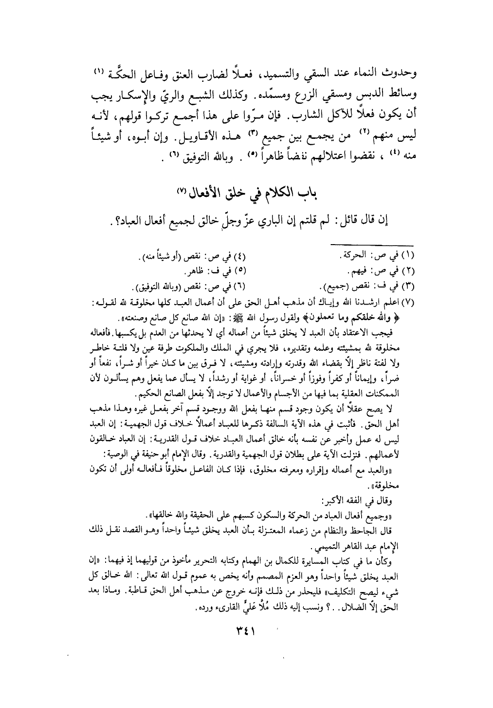 بَاب الْكَلَام فِي خلق الْأَفْعَال