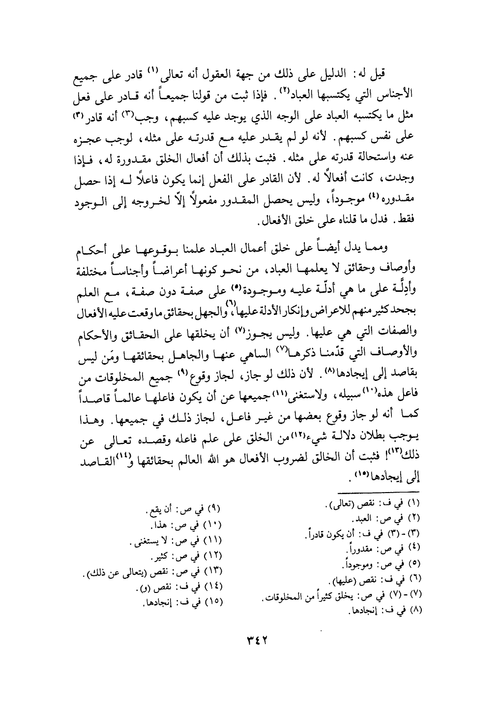 فَإِذا ثَبت من قَوْلنَا جَمِيعًا أَنه قَادر على فعل مثل مَا يكتسبه الْعباد على الْوَجْه الَّذِي يُوجد عَلَيْهِ كسبهم وَجب أَنه قَادر على نفس كسبهم