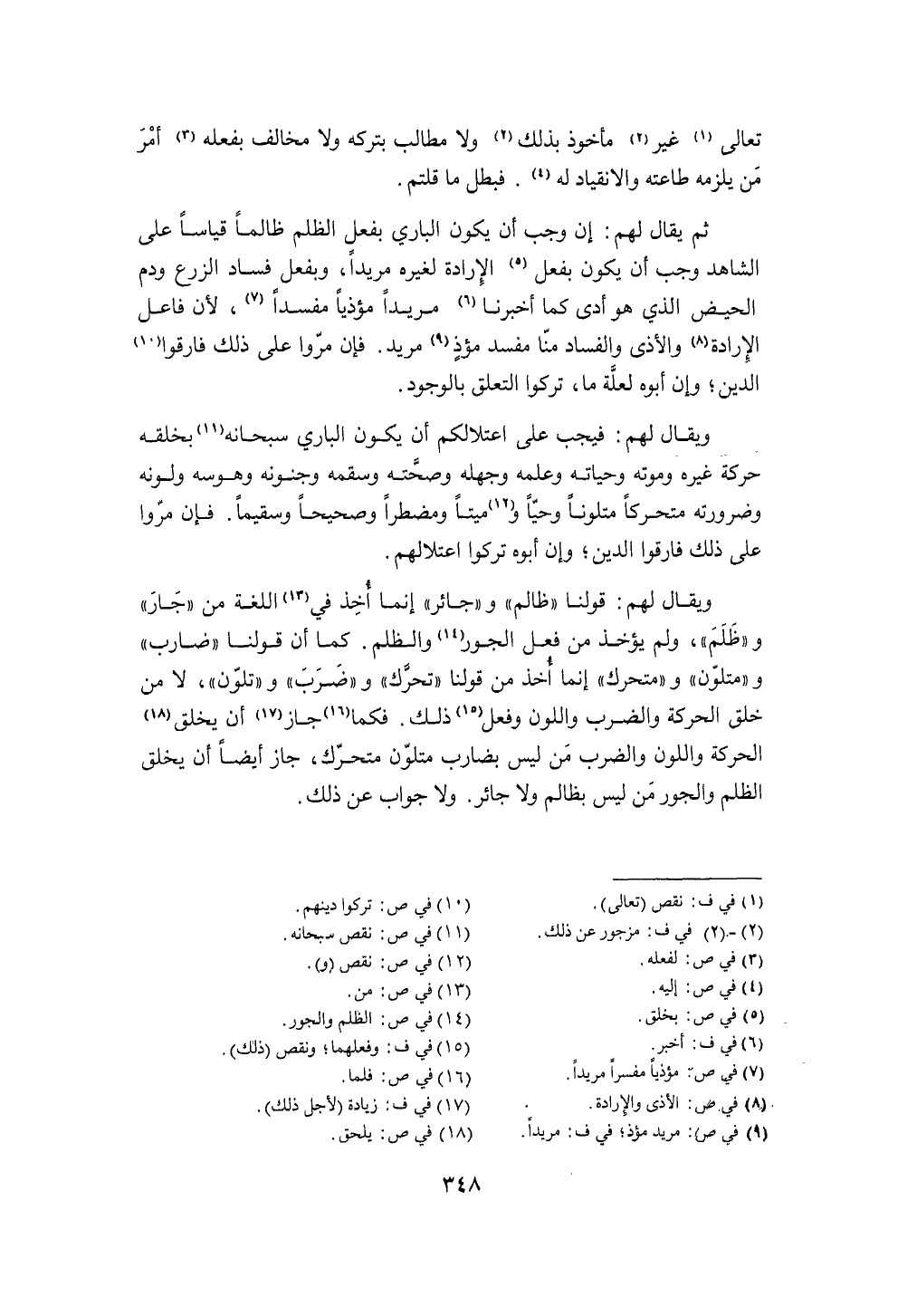 فَكَمَا جَازَ أَن يخلق الْحَرَكَة واللون وَالضَّرْب من لَيْسَ بضارب متلون متحرك جَازَ أَيْضا أَن يخلق الظُّلم والجور من لَيْسَ بظالم وَلَا جَائِر