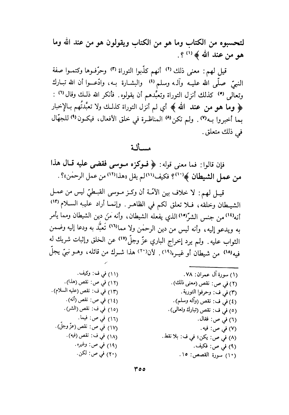 قيل لَهُم لَا خلاف بَين الْأمة أَن وكز مُوسَى القبطي لَيْسَ من عمل الشَّيْطَان وخلقه فَلَا تعلق لكم فِي الظَّاهِر