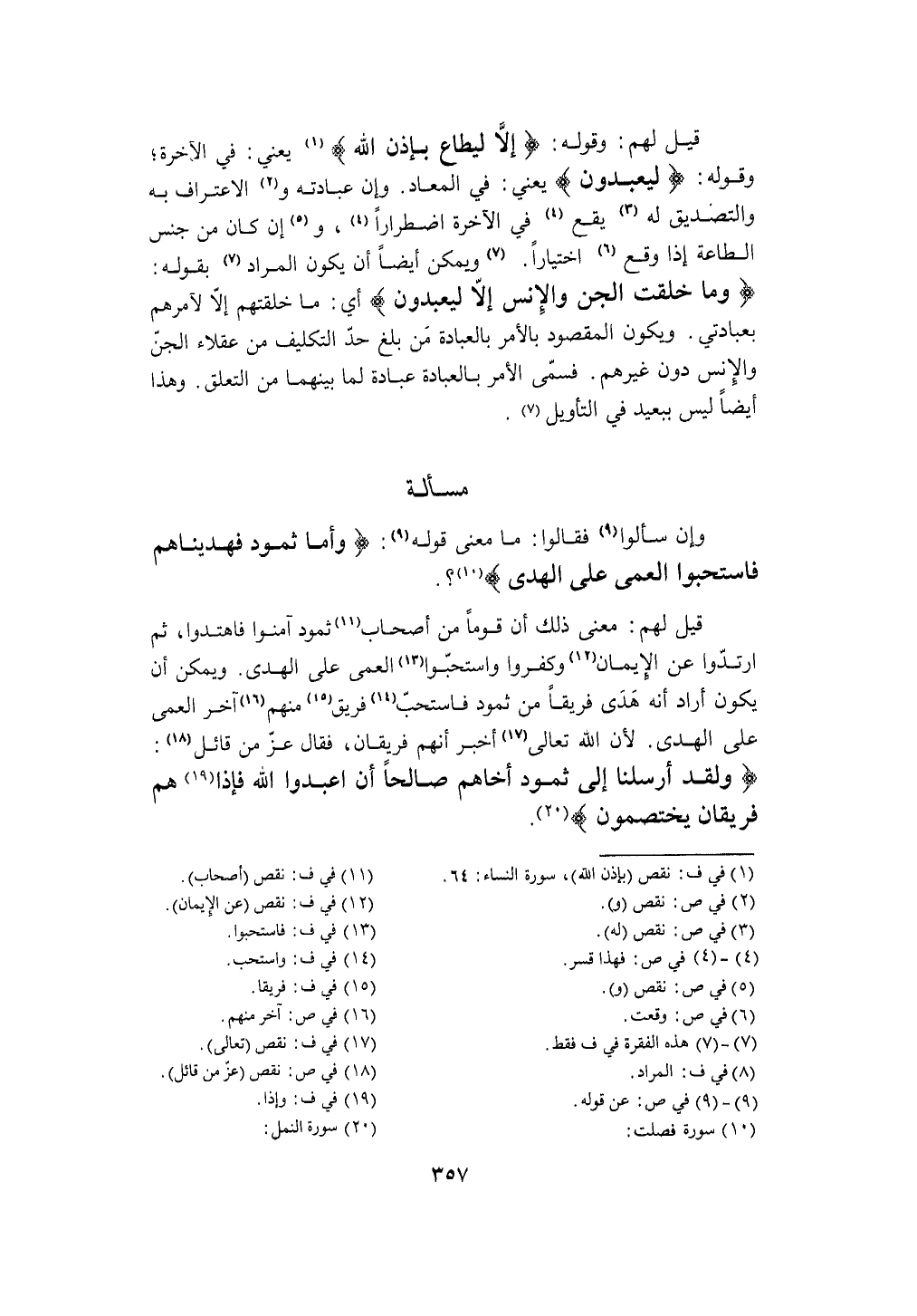 قيل لَهُم وَقَوله {إِلَّا ليطاع بِإِذن الله} يَعْنِي فِي الْآخِرَة وَقَوله {ليعبدون} يَعْنِي فِي الْمعَاد