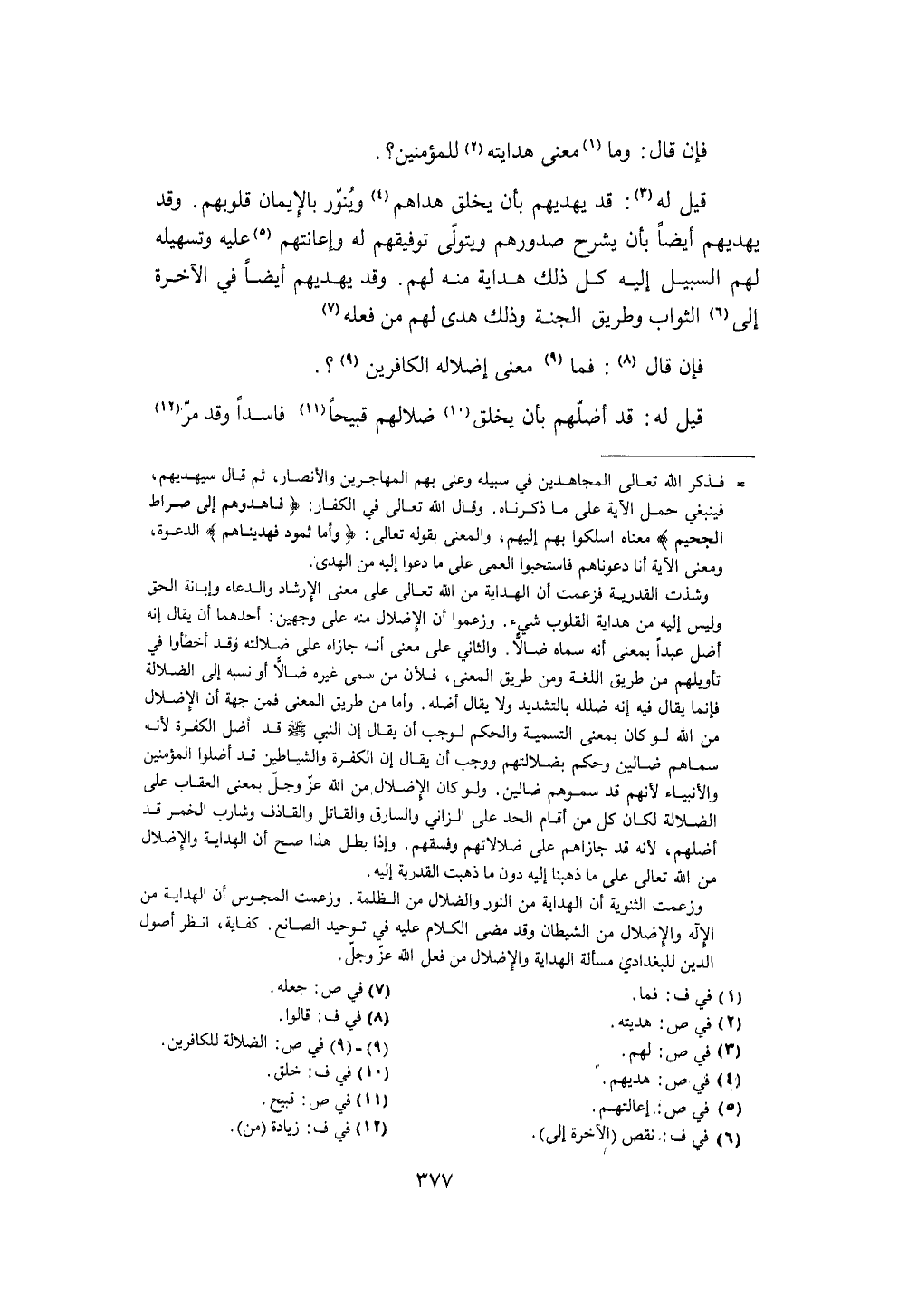 قيل لَهُ قد أضلهم بِأَن يخلق ضلالهم قبيحا فَاسِدا وَقد مر