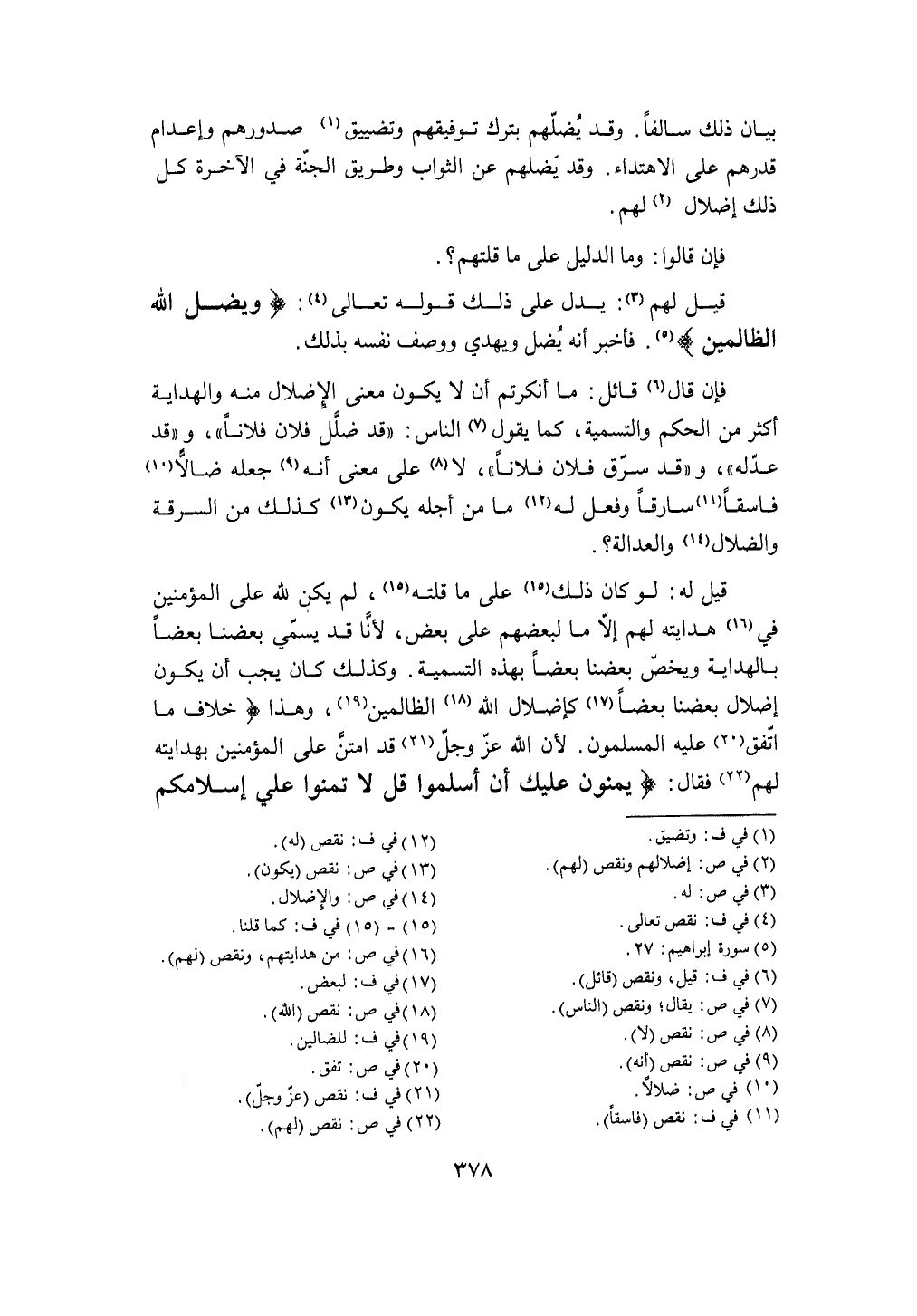 وَكَذَلِكَ كَانَ يجب أَن يكون إضلال بَعْضنَا بَعْضًا كإضلال الله الظَّالِمين وَهَذَا خلاف مَا اتّفق عَلَيْهِ الْمُسلمُونَ