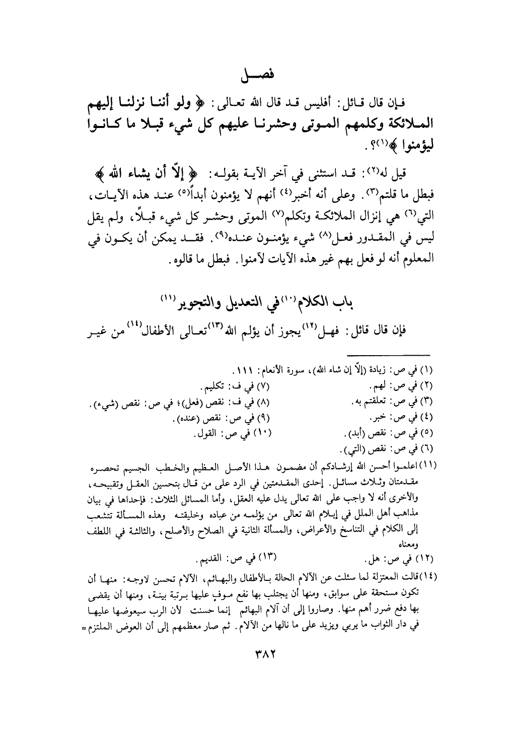 فَإِن قَالَ قَائِل أفليس قد قَالَ الله تَعَالَى وَلَو أننا نزلنَا إِلَيْهِم الْمَلَائِكَة وكلمهم الْمَوْتَى وحشرنا عَلَيْهِم كل شَيْء قبلا مَا كَانُوا ليؤمنوا