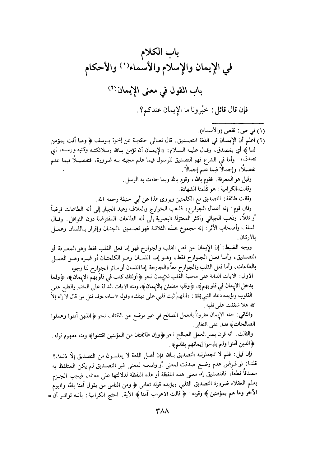 بَاب الْكَلَام فِي الْإِيمَان وَالْإِسْلَام والأسماء وَالْأَحْكَام