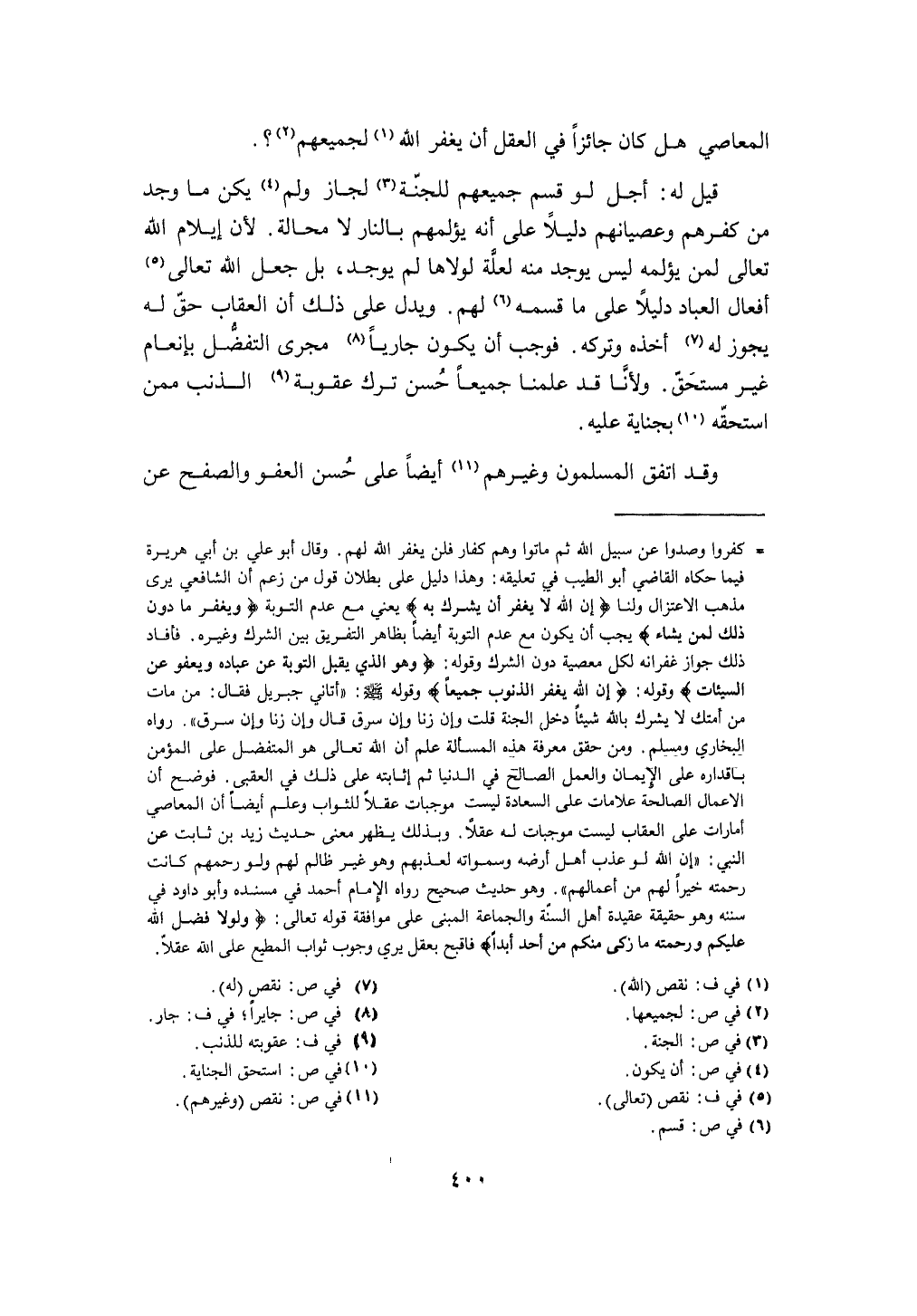 الْمعاصِي هَل كَانَ جَائِزا فِي الْعقل أَن يغْفر الله لجميعهم
