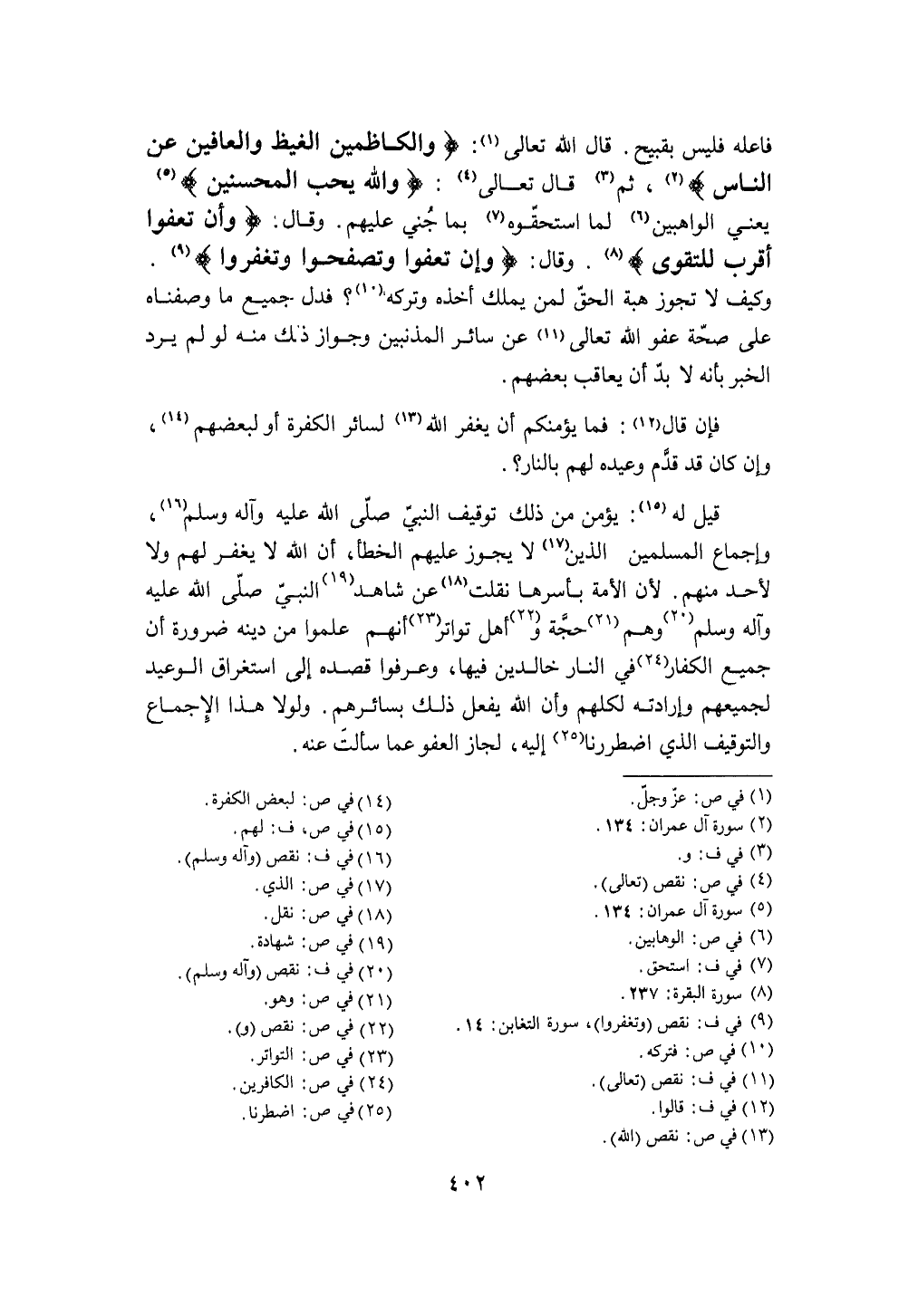 وَقَالَ {وَإِن تعفوا وتصفحوا وتغفروا} وَكَيف لَا تجوز هبة الْحق لمن يملك أَخذه وَتَركه فَدلَّ جَمِيع مَا وصفناه على صِحَة عَفْو الله تَعَالَى عَن سَائِر المذنبين وَجَوَاز ذَلِك مِنْهُ لَو لم يرد الْخَبَر بِأَنَّهُ لَا بُد أَن يُعَاقب بَعضهم