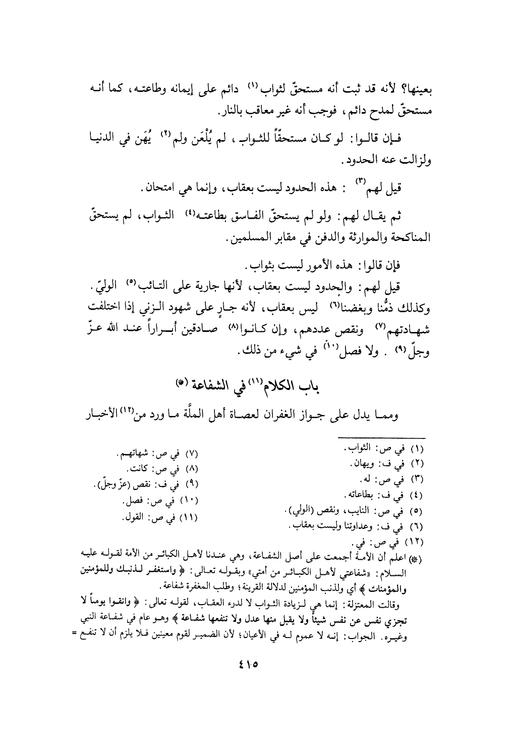 بَاب الْكَلَام فِي الشَّفَاعَة