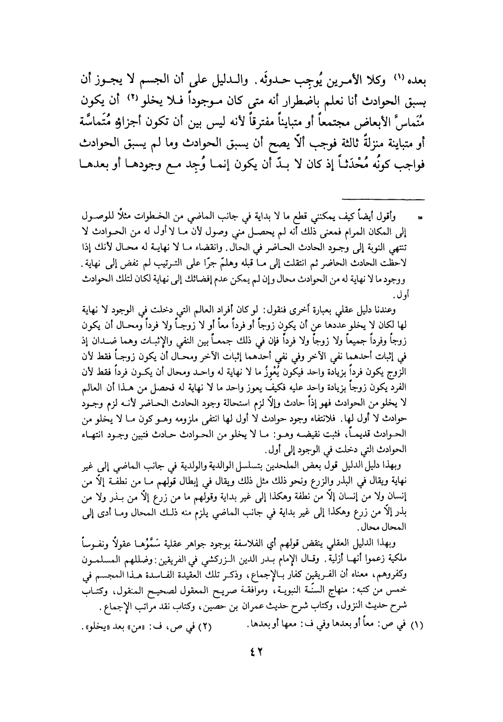 بعده وكلا الْأَمريْنِ يُوجب حُدُوثه