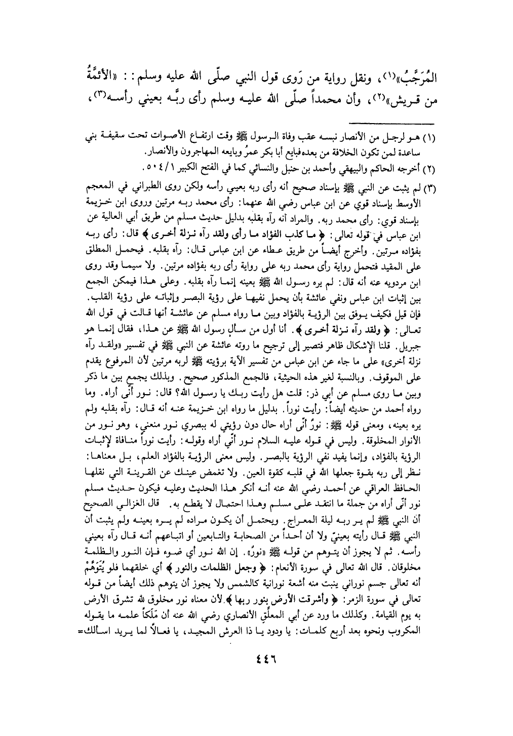 المرجب وَنقل رِوَايَة من روى قَول النَّبِي صلى الله عَلَيْهِ وَسلم (الْأَئِمَّة من قُرَيْش) وَأَن مُحَمَّدًا صلى الله عَلَيْهِ وَسلم رأى ربه بعيني رَأسه