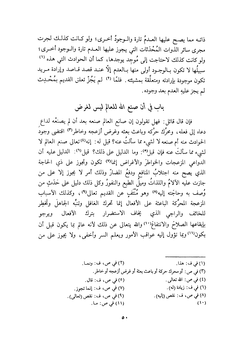 بَاب فِي أَن صنع الله للْعَالم لَيْسَ لغَرَض