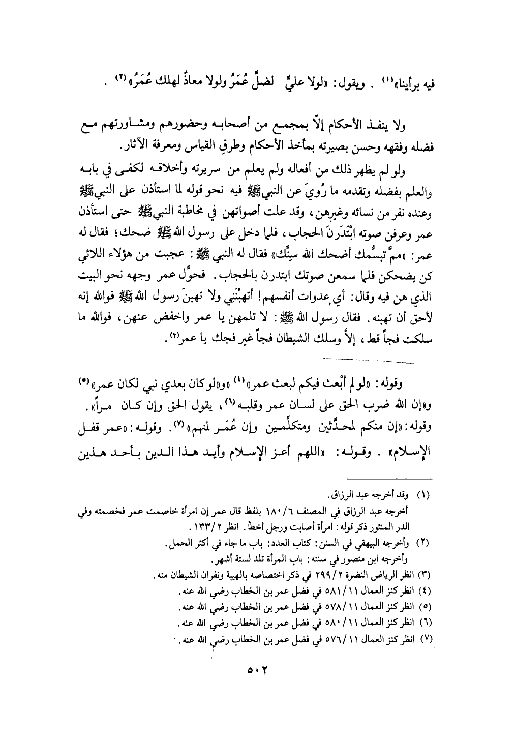 وَقَوله (لَو لم أبْعث فِيكُم لبعث عمر) و (لَو كَانَ بعدِي نَبِي لَكَانَ عمر) و (إِن الله ضرب الْحق على لِسَان عمر وَقَلبه يَقُول الْحق وَإِن كَانَ مرا)
