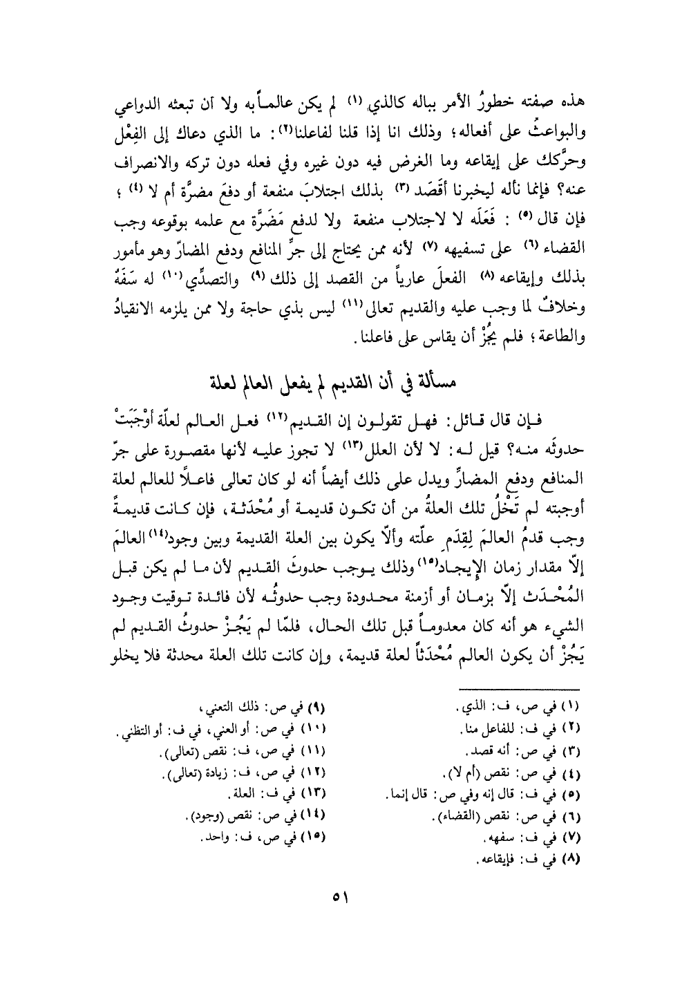 مَسْأَلَة فِي أَن الْقَدِيم لم يفعل الْعَالم لعِلَّة