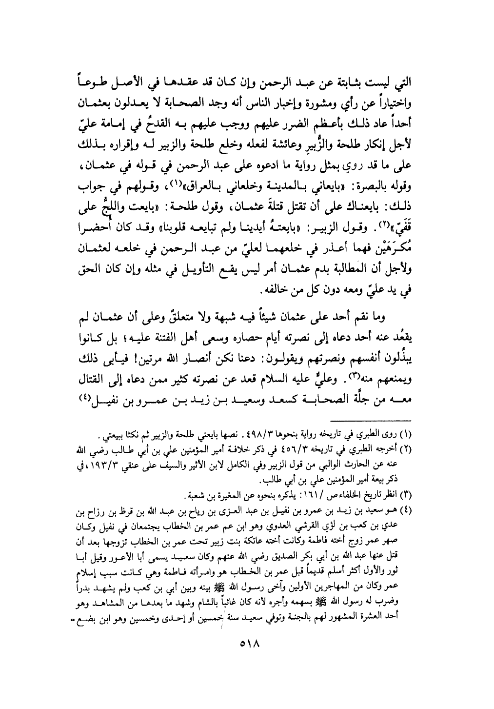 الَّتِي لَيست بثابتة عَن عبد الرَّحْمَن وَإِن كَانَ قد عقدهَا فِي الأَصْل طَوْعًا واختيارا عَن رَأْي ومشورة وإخبار النَّاس أَنه وجد الصَّحَابَة لَا يعدلُونَ بعثمان أحدا عَاد ذَلِك بأعظم الضَّرَر عَلَيْهِم وَوَجَب عَلَيْهِم بِهِ الْقدح فِي إِمَامَة عَليّ لأجل إِنْكَار طَلْحَة وَالزُّبَيْر وَعَائِشَة لفعله وخلع طَلْحَة وَالزُّبَيْر لَهُ وَإِقْرَاره بذلك على مَا قد رُوِيَ بِمثل رِوَايَة مَا ادعوهُ على عبد الرَّحْمَن فِي قَوْله فِي عُثْمَان وَقَوله بِالْبَصْرَةِ بايعاني بِالْمَدِينَةِ وخلعاني بالعراق وَقَوْلهمْ فِي جَوَاب ذَلِك بايعناك على أَن تقتل قتلة عُثْمَان وَقَول طَلْحَة بَايَعت واللج على قفي