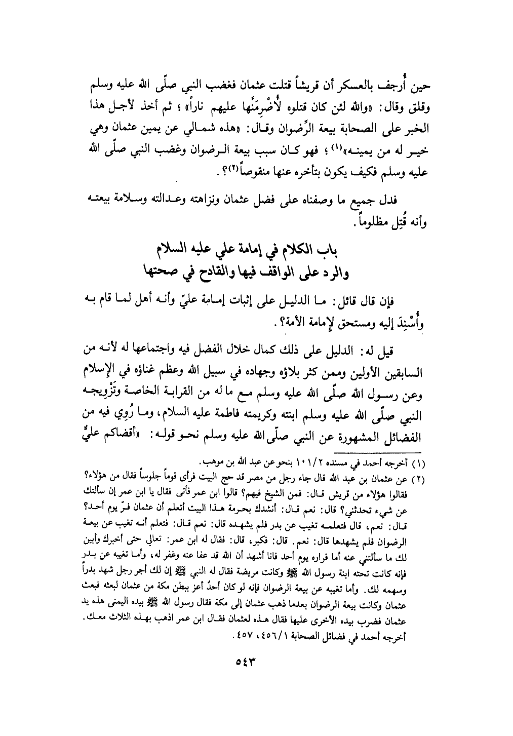 بَاب الْكَلَام فِي إِمَامَة عَليّ عَلَيْهِ السَّلَام وَالرَّدّ على الْوَاقِف فِيهَا والقادح فِي صِحَّتهَا