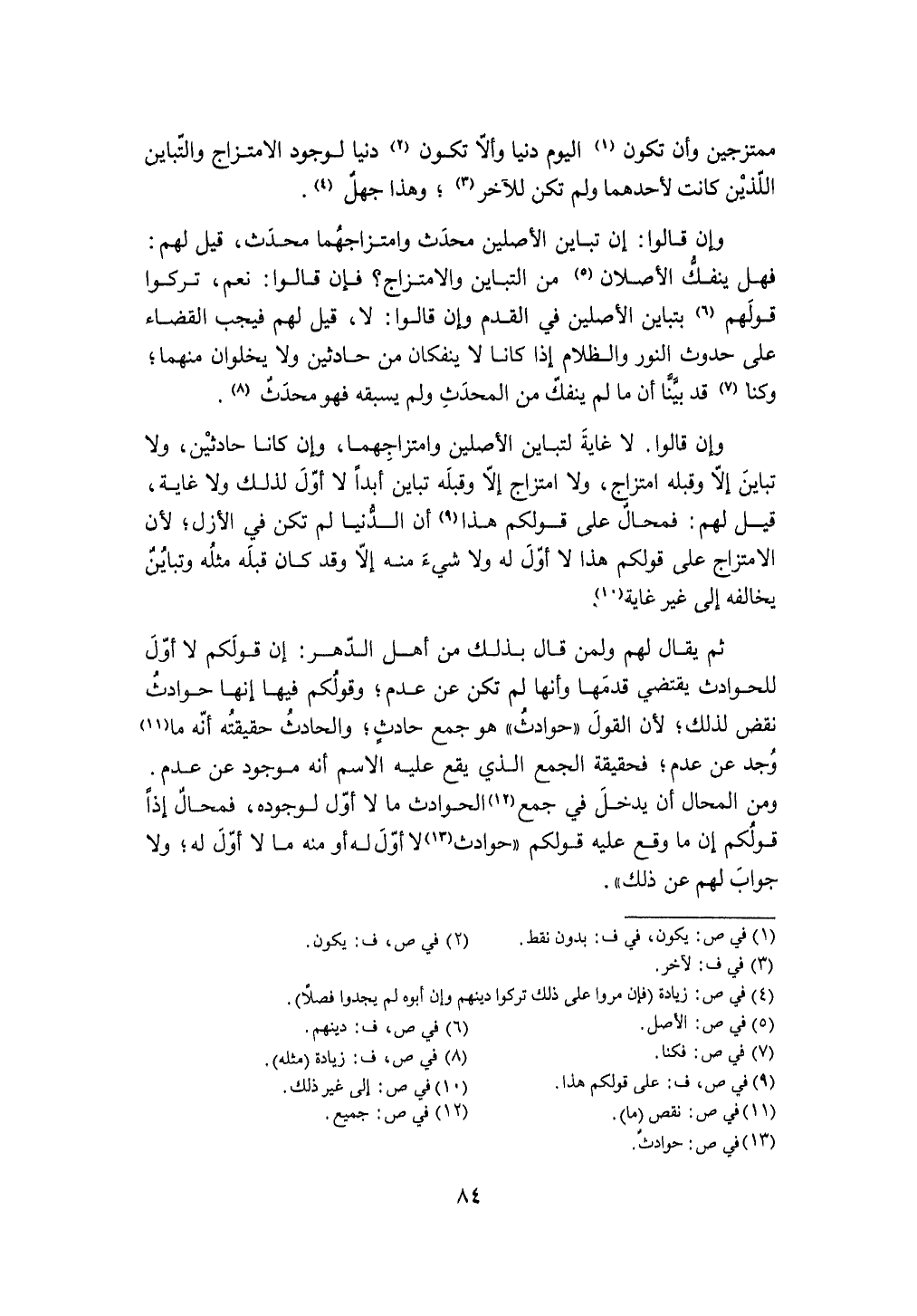 وَإِن قَالُوا إِن تبَاين الْأَصْلَيْنِ مُحدث وامتزاجهما مُحدث قيل لَهُم فَهَل يَنْفَكّ الأصلان من التباين والامتزاج فَإِن قَالُوا نعم تركُوا قَوْلهم بتباين الْأَصْلَيْنِ فِي الْقدَم وَإِن قَالُوا لَا قيل لَهُم فَيجب الْقَضَاء على حُدُوث النُّور والظلام إِذا كَانَا لَا ينفكان من حادثين وَلَا يخلوان مِنْهُمَا وَكُنَّا قد بَينا أَن مَا لم يَنْفَكّ من الْمُحدث وَلم يسْبقهُ فَهُوَ مُحدث