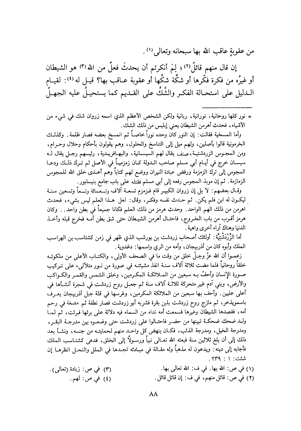 إِن قَالَ مِنْهُم قَائِل لم أنكرتم أَن يحدث فعل من الله هُوَ الشَّيْطَان أَو غَيره من فكرة فكرها أَو شكة شكها أَو عُقُوبَة عاقب بهَا قيل لَهُ لقِيَام الدَّلِيل على اسْتِحَالَة الْفِكر وَالشَّكّ على الْقَدِيم كَمَا يَسْتَحِيل عَلَيْهِ الْجَهْل