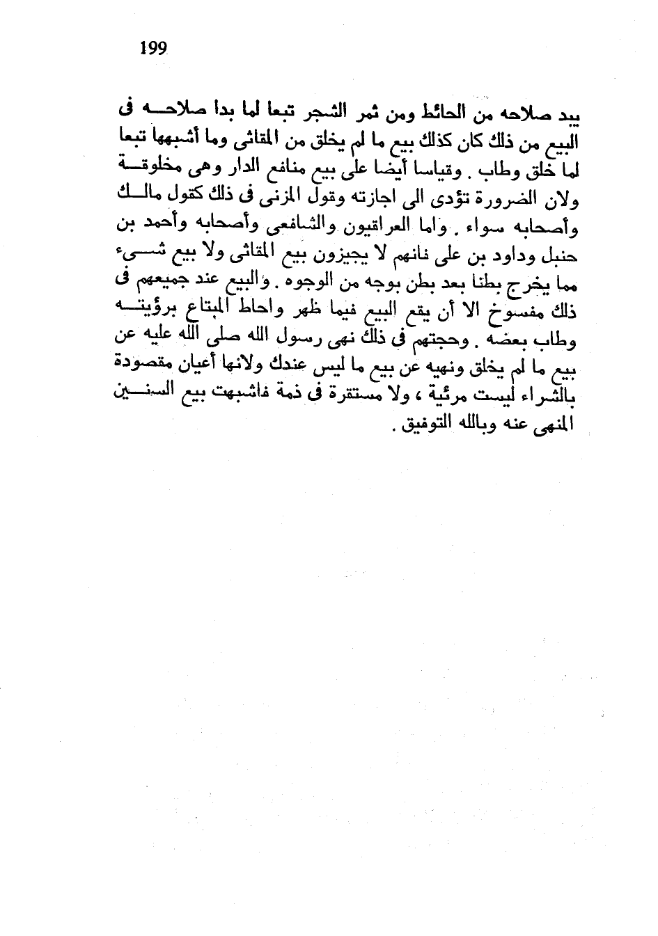 يَبْدُ صَلَاحُهُ مِنَ الْحَائِطِ وَمِنْ ثَمَرِ الشَّجَرِ تَبَعًا لِمَا بَدَا صَلَاحُهُ فِي الْبَيْعِ مِنْ ذَلِكَ كَانَ كَذَلِكَ بَيْعُ مَا لَمْ يُخْلَقْ مِنَ الْمَقَاثِي وَمَا أَشْبَهَهَا تَبَعًا لِمَا خُلِقَ وَطَابَ وَقِيَاسًا أَيْضًا عَلَى بَيْعِ مَنَافِعِ الدَّارِ وَهِيَ مَخْلُوقَةٌ وَلِأَنَّ الضَّرُورَةَ تُؤَدِّي إِلَى إِجَازَتِهِ وَقَوْلُ الْمُزَنِيِّ فِي ذَلِكَ كَقَوْلِ مَالِكٍ وَأَصْحَابِهِ سَوَاءً وَأَمَّا الْعِرَاقِيُّونَ وَالشَّافِعِيُّ وَأَصْحَابُهُ وَأَحْمَدُ بْنُ حَنْبَلٍ وَدَاوُدُ بْنُ عَلِيٍّ فَإِنَّهُمْ لَا يُجِيزُونَ بَيْعَ الْمَقَاثِي وَلَا بَيْعَ شَيْءٍ مِمَّا يَخْرُجُ بَطْنًا بَعْدَ بَطْنٍ بِوَجْهٍ مِنَ الْوُجُوهِ وَالْبَيْعُ عِنْدَ جَمِيعِهِمْ فِي ذَلِكَ مَفْسُوخٌ إِلَّا أَنْ يَقَعَ الْبَيْعُ فِيمَا ظَهَرَ وَأَحَاطَ الْمُبْتَاعُ بِرُؤْيَتِهِ وَطَابَ بَعْضُهُ وَحُجَّتُهُمْ فِي ذَلِكَ نَهْيُ رَسُولِ اللَّهِ صَلَّى اللَّهُ عَلَيْهِ وَسَلَّمَ عَنْ بَيْعِ مَا لَمْ يُخْلَقْ وَنَهْيُهُ عَنْ بَيْعِ مَا ليس عندك ولأنها عيان مَقْصُودَةٌ بِالشِّرَاءِ لَيْسَتْ مَرْئِيَّةً وَلَا مُسْتَقِرَّةً فِي ذِمَّةٍ فَأَشْبَهَتْ بَيْعَ السِّنِينَ الْمَنْهِيَّ عَنْهُ وَبِاللَّهِ التوفيق